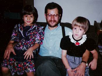 É Pastor ordenado, casado com Simone Meimaridis com quem tem três filhos. Na foto está a Rebecca e a Melina.